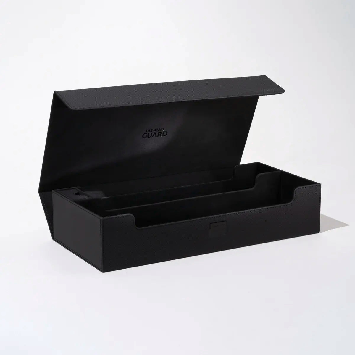 This ultimate box leaves nothing to be desired! There is space for everything you will need, with compartments for multiple card decks and cases, two play-mats and accessories like dice, tokens and life counters!